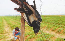 3. 人工驱赶:在瓜园周围挂上一些假人、稻草人等,或者定时在瓜园附近走动,制造人影,让喜鹊误以为有人类活动,不敢靠近。